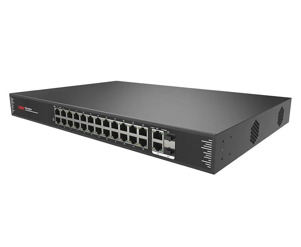 Коммутатор ONV POE31024PFA изготавливается в прочном и надежном корпусе из стального сплава. Поддерживает возможность монтажа в серверную стойку, где занимает 1 слот. 24 порта поддерживают возможность подачи электропитания по кабелю передачи данных по технологии PoE с предельной выходной мощностью в 400 Вт. Подходит для систем видеомониторинга и охраны. Содержит таблицу в 16000 MAC адресов для настройки уровней доступа.