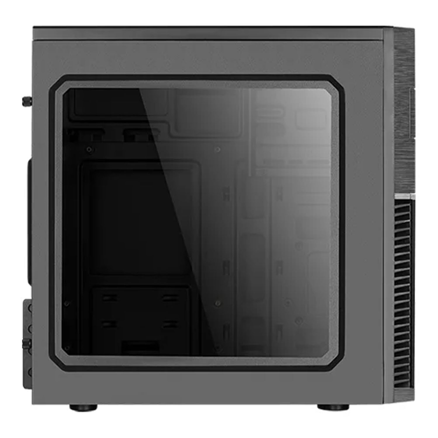 Корпус Aerocool CS-105 Blue сконструирован из отличного стального материала и боковым окошком из стекла. Корпус оборудован двумя внутренними отсеками для 3,5" дисков и двумя отсеками для диска 2.5 дюймов. На лицевой панели находится два интерфейса USB и один 3.0, а также два аудио разъема. Вверху предусмотрено место для блока питания.