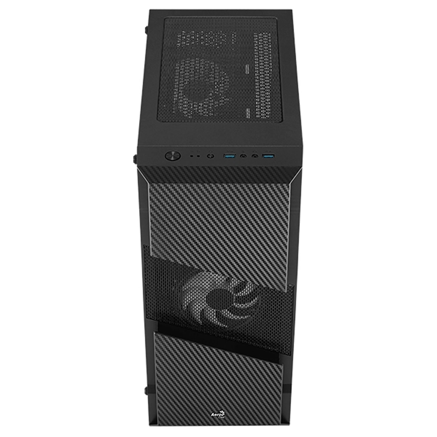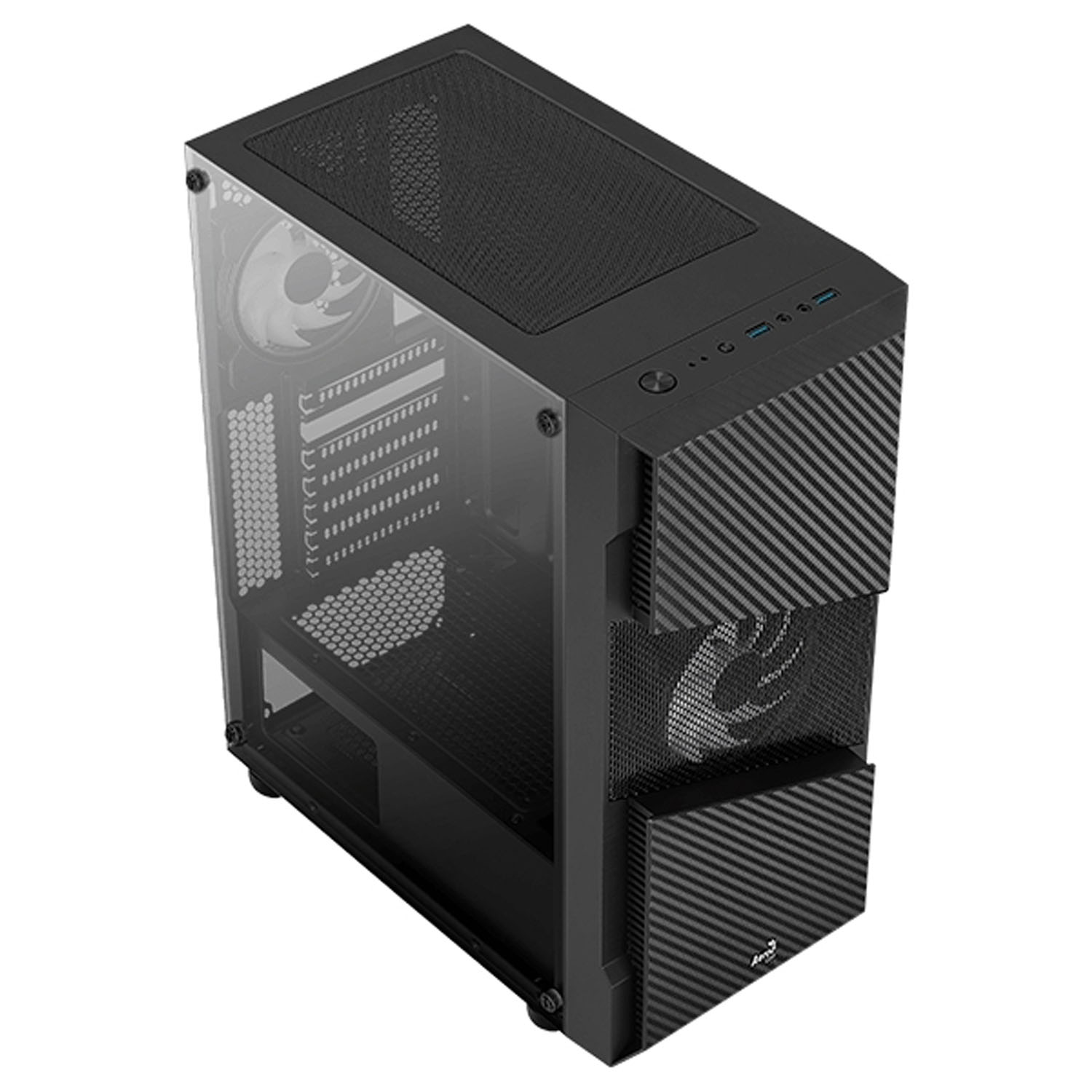 Корпус Aerocool Menace Saturn RGB сконструирован из отличного стального материала с боковым окошком из стекла. Корпус оснащен двумя внутренними отсеками для дисков 3,5" и двумя отсеками под диск 2.5 дюймов. На передней стороне установлены три интерфейса USB и один 3.0, а также два аудио разъемами. Для блока питания место предусмотрено внизу корпуса.