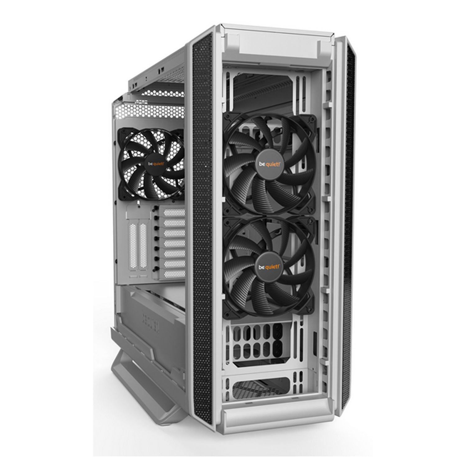 В модели Bequiet! SilentBase 802 Window White установлено три вентилятора 140 мм, также можно установить водяное охлаждение. Для удобной установки оборудования можно снять две стенки. Снизу корпуса расположено место под блок питания.
