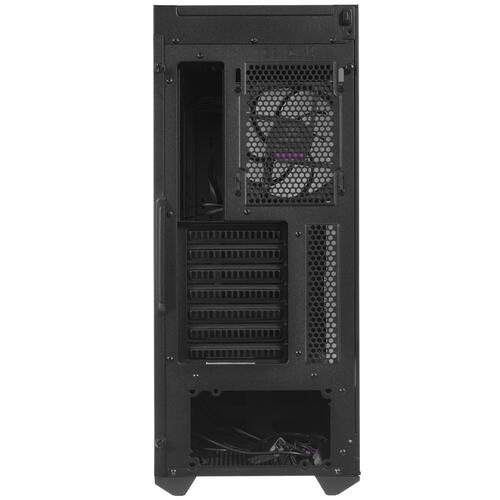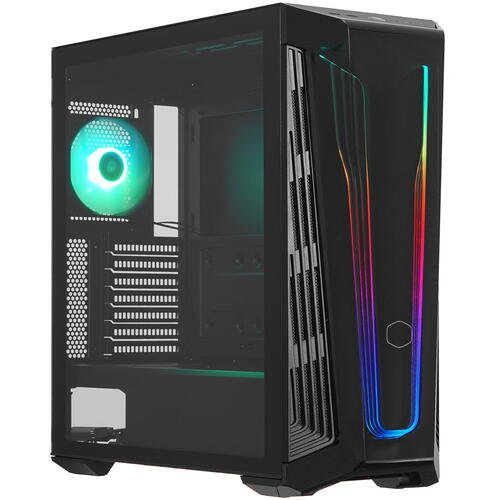 Корпус Cooler Master MasterBox 540 изготовлен из долговечной стали. Окрашен матовой черной краской. Имеется прозрачная боковая панель. Обладает возможностью установить до двух стандартных жестких диска 2.5 дюйма, четыре высокоскоростных накопителя типа 2.5 дюйма. Интегрирована лента разноцветной светодиодной подсветки с возможностью настройки мерцания.