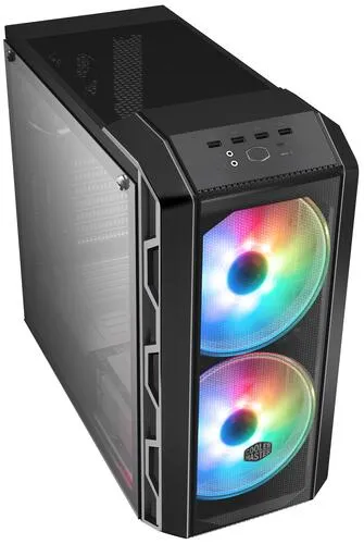 Корпус Cooler Master MasterCase H500 ARGB изготавливается из прочного и долговечного металлического сплава. Окрашен в матовый черный цвет. Имеется прозрачная боковая панель. Предусмотрена возможность установить до четырех скоростных дисков размера 2.5 дюйма. Также имеются посадочные места под два классических жестких диска 3.5 дюйма.