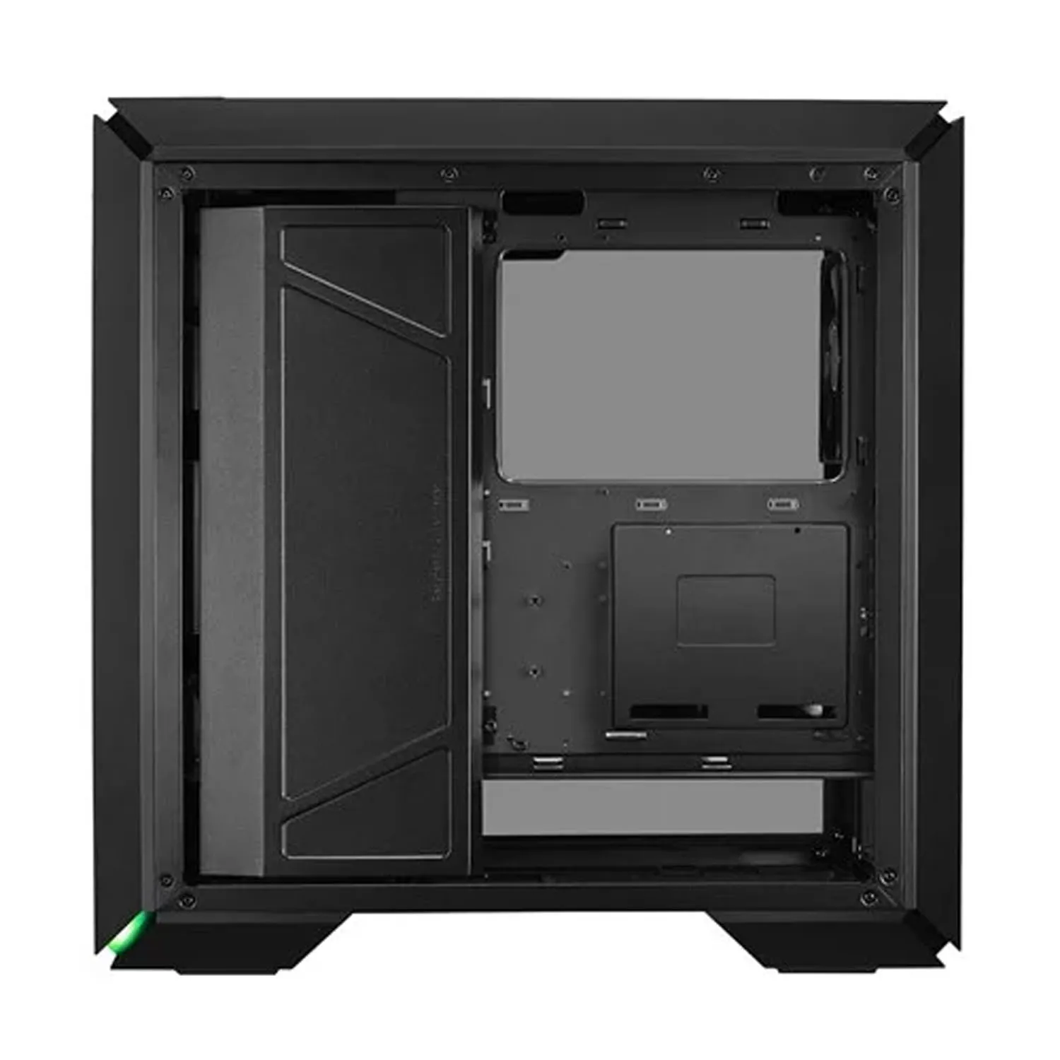 Cooler Master MasterCase MC600P является корпусом для компьютера игровой направленности, исполненным в современном черном цвете и возможностью подсветки. Тип форм-фактора данного корпуса выполнен как Midi-Tower, благодаря чему в компьютере можно поставить следующие форм-факторы плат – ATX, EATX, MiniITX и MicroATX. Возможные размеры у микропроцессора достигают 19 см, а длина видеокарты до 412 мм в положении горизонтально.