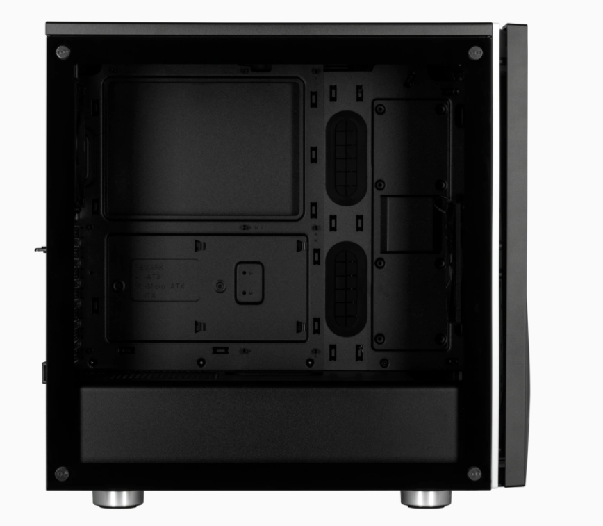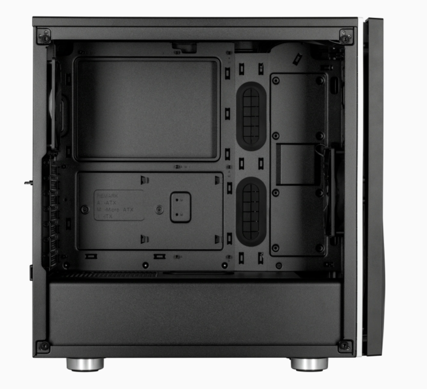 Внутри корпуса предусмотрено четыре отделения для накопителей размером 2,5 дюйма и два отделения для накопителей размером 3,5 дюйма. Собрать и подключить компоненты ПК в корпусе Corsair Carbide Spec вам будет просто благодаря правильно организованному пространству внутри.