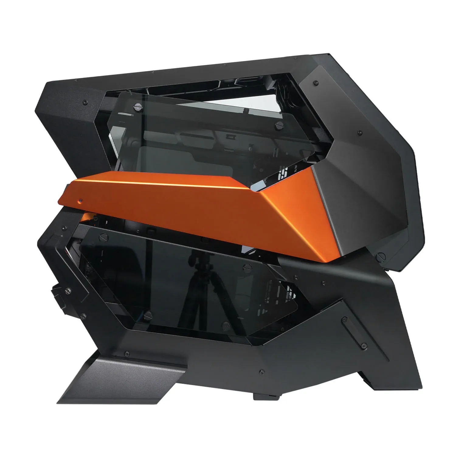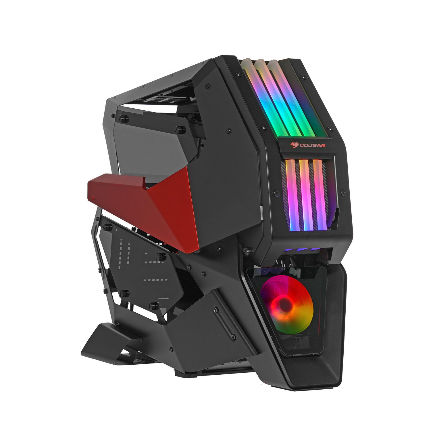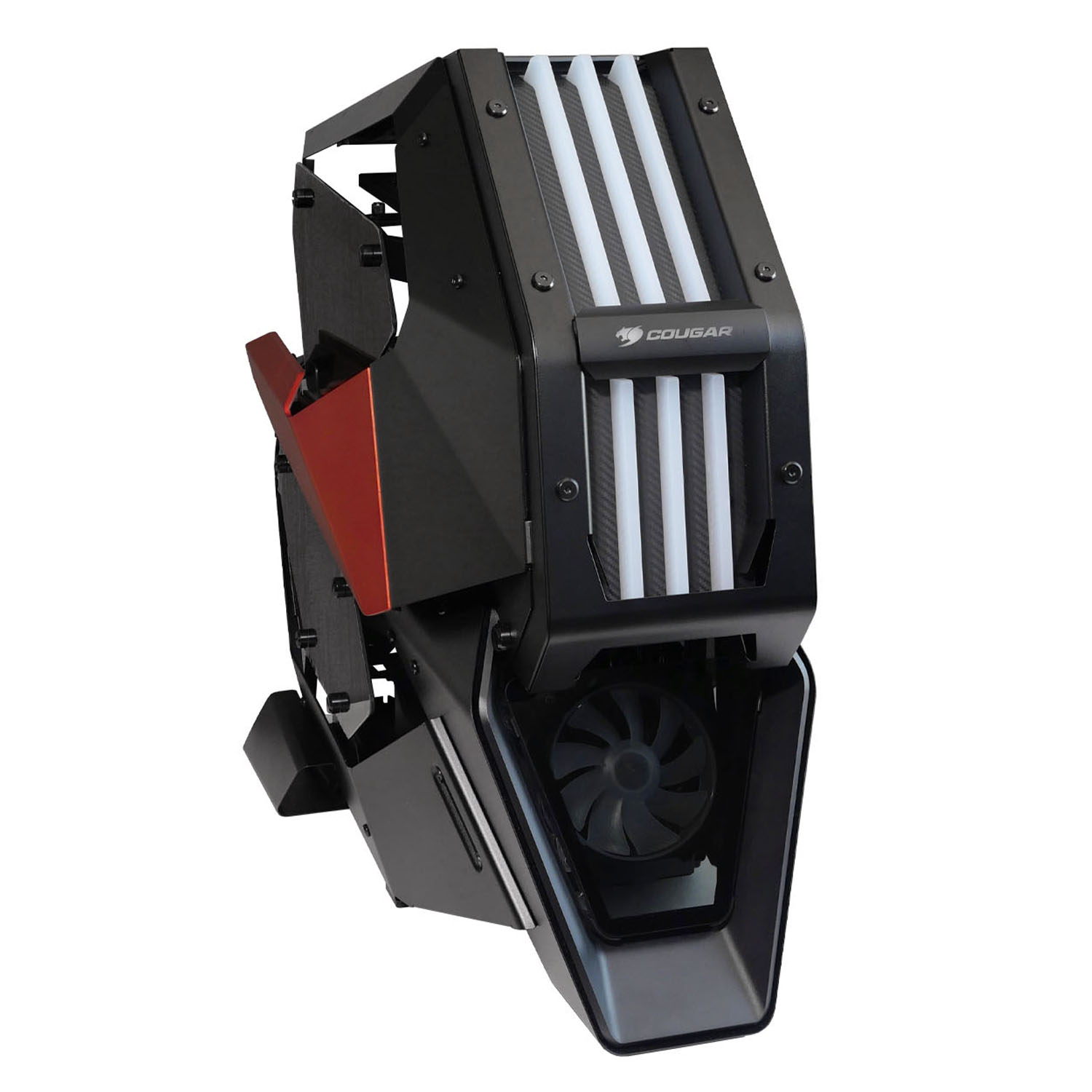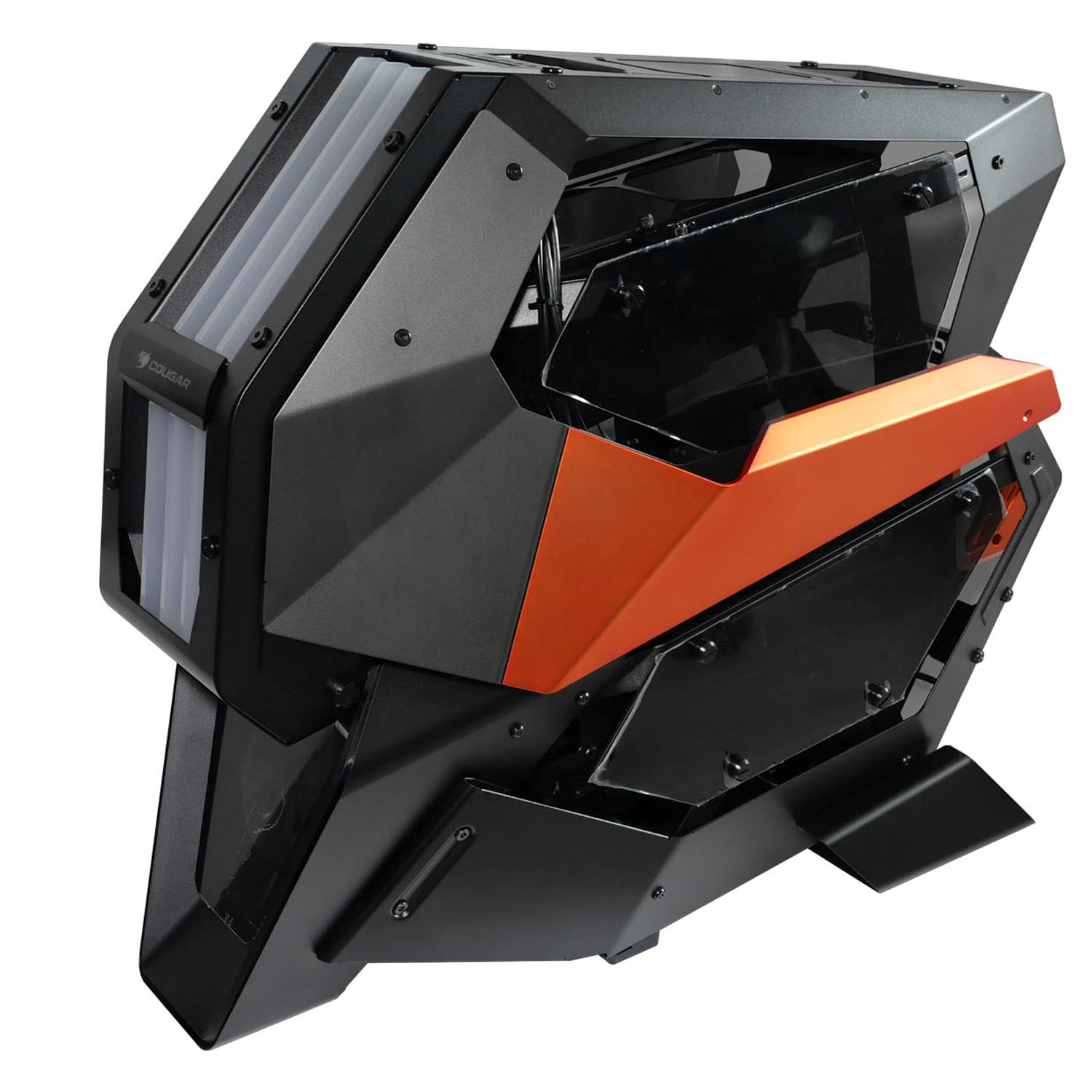 Cougar Conquer 2 является корпусом для игрового компьютера, созданным в элегантном черно-оранжевом дизайне и возможностью подсветки. Тип форм-фактора данного корпуса сделан как Midi-Tower, благодаря чему компьютер можно оснастить следующими форм-факторами плат – ATX, EATX, Mini-ITX и MicroATX. Возможная вместимость у микропроцессора равняется 20 см, а длина видеокарты до 40 см с горизонтальным расположением.