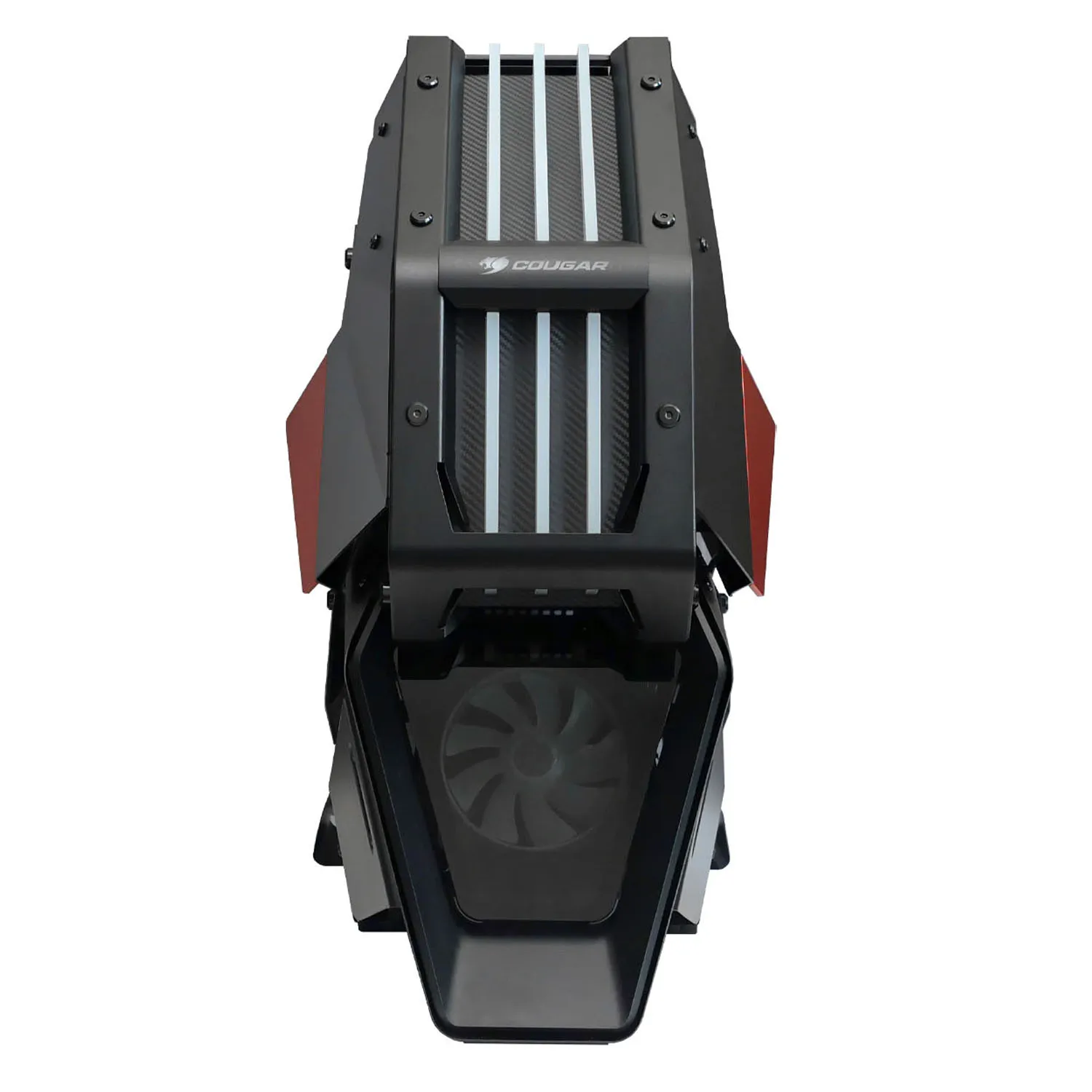 В модели Cougar Conquer 2 уже установлен один кулер размером 120 мм, есть места для трех дополнительных вентиляторов 120 мм и водяного охлаждения. Боковые снимающиеся стенки дают возможность устанавливать необходимые комплектующие. Блок питания в корпусе располагается снизу.