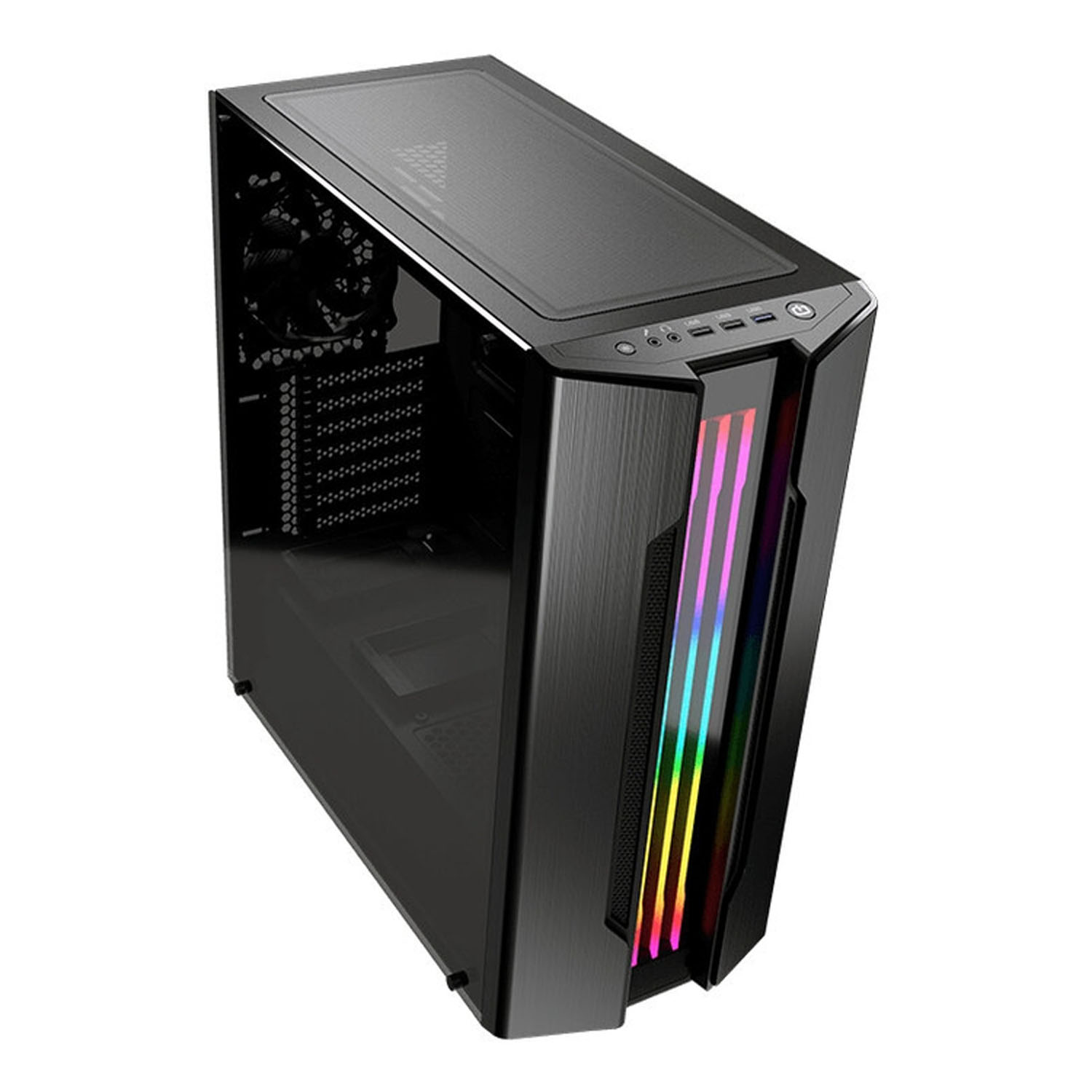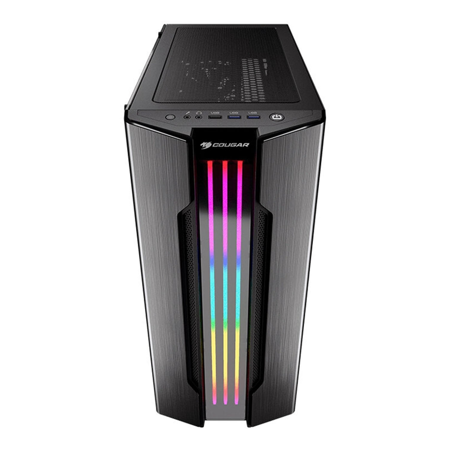 Корпус Cougar Gemini S IronGray сконструирован из высококачественного металлического материала со стеклянной боковой стороной. В корпусе установлены два внутренних отсека для 3,5" дисков и пять отсеков под диск 2.5 дюймов. На лицевой стороне присутствует три USB 2.0 интерфейса, два 3.0 USB и два аудио выхода. В корпус предусмотрено семь слотов расширения, для установки необходимых комплектующих.