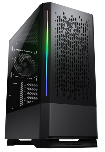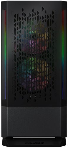 Корпус Cougar MX430 Air RGB черный изготовлен из качественного металлического сплава. Боковая стенка выполнена из закаленного стекла с небольшой тонировкой. Позволяет установить два 3.5-дюймовых диска, а также 4 компактных твердотельных накопителя. Передняя панель предоставляет разъемы USB для флэшек, клавиатуры и мыши, 3.5 мм для наушников и микрофонов, кнопку настройки RGB подсветки.