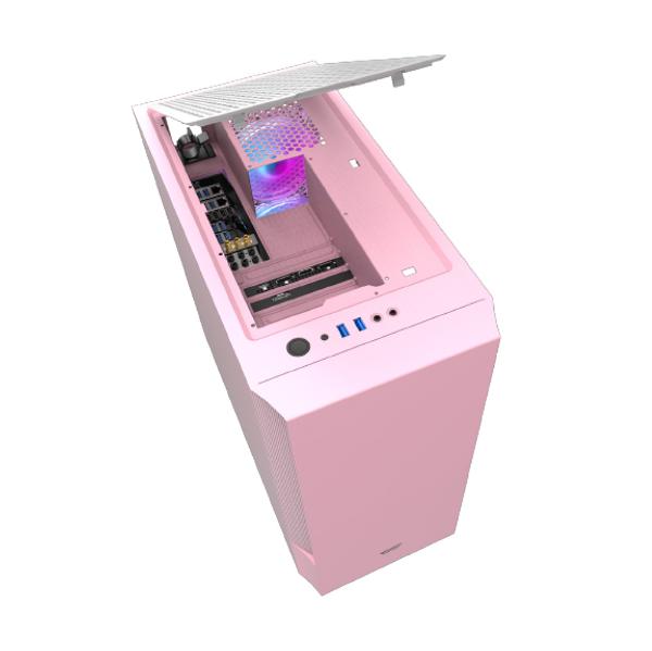 Корпус DarkFlash DLV22 розовый изготавливается из долговечного металлического сплава. Выполнен в стильном ярком дизайне. Имеет прозрачные боковые стенки. Предусмотрены посадочные места под 2 классических накопителя 3.5 дюйма, а также два высокоскоростных SSD диска 2.5 дюйма. Встроена панель быстрого доступа с интерфейсами USB и 3.5 мм.