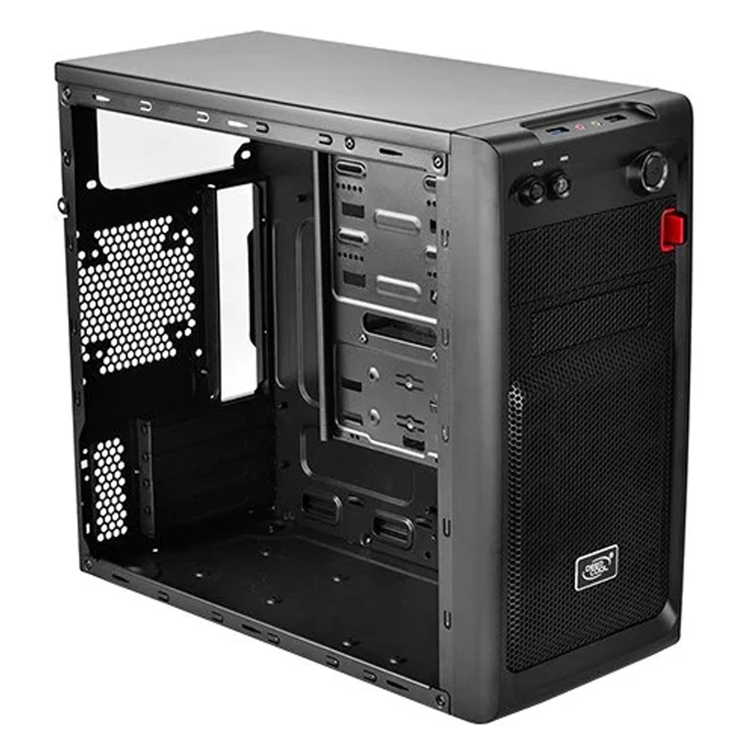 Deepcool SMARTER является корпусом для компьютера, изготовленный в классическом черном цвете. Форм-фактор данного корпуса выполнен в типе Mini-Tower, что позволяет оборудовать в нем следующие форм факторы плат – Min-ITX и MicroATX. Максимальные размеры у микропроцессора составляют 165 мм, а у видеокарты 320 мм с горизонтальным расположением.