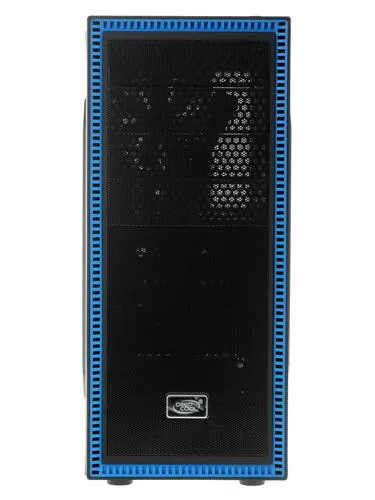 Корпус DeepCool Tesseract BF изготавливается из прочного и долговечного стального сплава, окрашенного в черный цвет с синими вставками. Панель быстрого доступа содержит порты USB для клавиатуры и мышек, а также интерфейсы 3.5 мм под наушники и микрофон. Боковая панель содержит дополнительную сетку для вентиляции горячих компонентов.