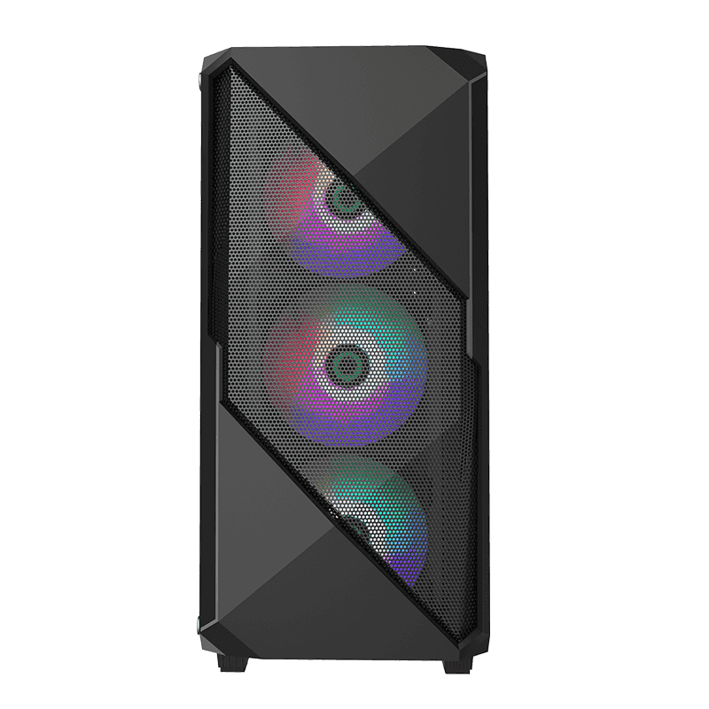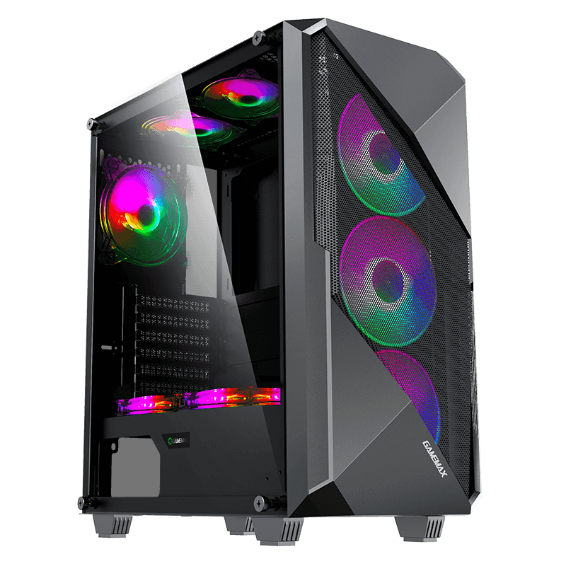 Корпус GameMax Revolt выполнен из прочного металлического сплава, а также содержит прозрачные боковую и переднюю стенки. Имеется возможность установки до восьми вентиляторов форматов 120 мм и 140 мм. Возможно разместить по два твердотельных накопителя 2.5 и 3.5 дюйма. Встроены дополнительные пылевые фильтры. На передней стенке имеются разъемы USB 2.0, 3.0 для подключения периферии, а также 3.5 мм для микрофона и динамиков.