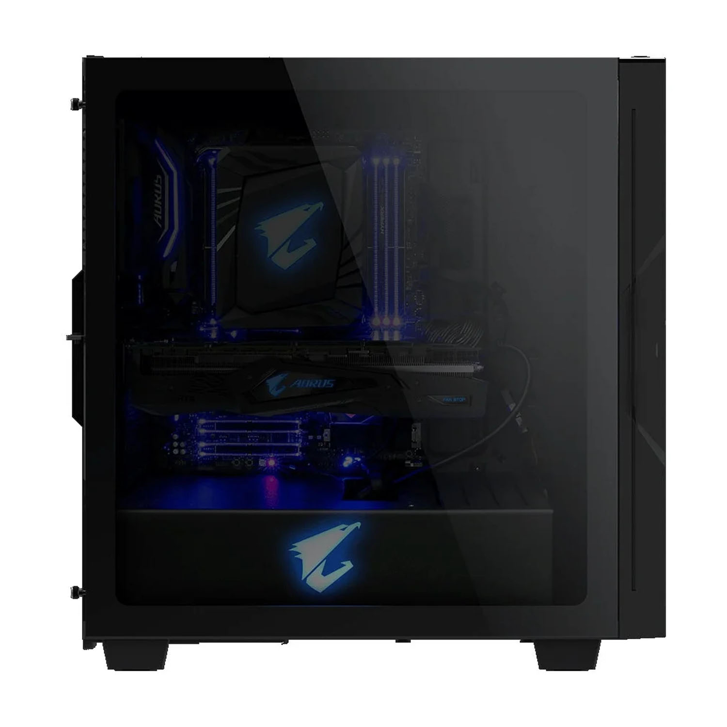 Gigabyte GB-AC300G представляет собой игровой компьютерный корпус, оформленный в красивом черном дизайне и возможностью подсветки. Тип форм-фактора данного корпуса исполнен как Midi-Tower, благодаря чему в компьютер можно установить следующие форм-факторы плат – ATX, MiniITX и MicroATX. Возможный объем у микропроцессора достигает 170 мм, а длина видеокарты до 40 см с горизонтальным положением в корпусе.