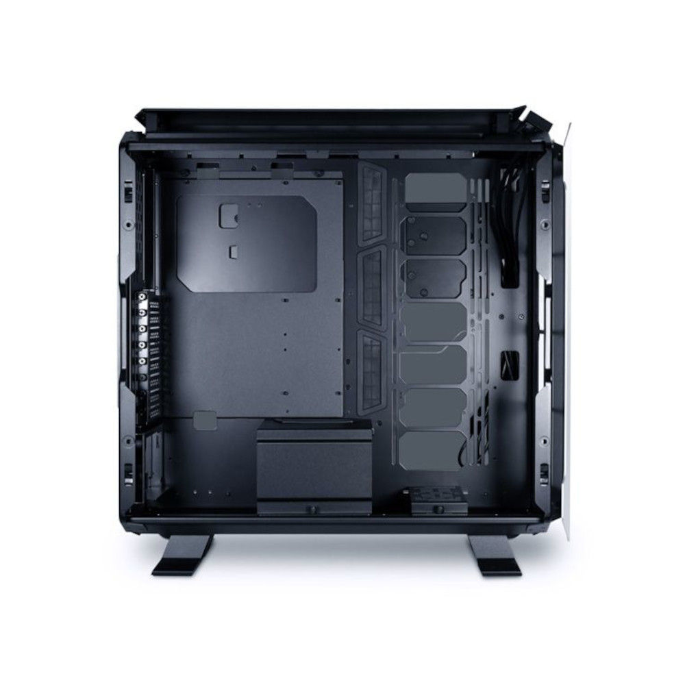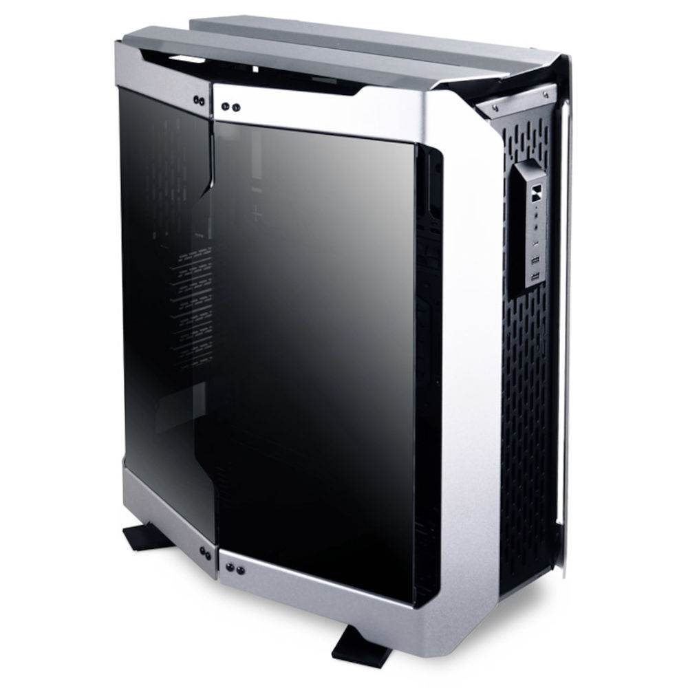 Корпус Lian Li TR-01X Odyssey X впечатляет своим эффектным внешним видом с агрессивным игровым дизайном в черно-белых тонах. Модель имеет особую конструкцию с открытым корпусом, обеспечивающим свободный воздушный поток к компонентам сборки для получения лучшей производительности системы. Боковые стенки корпуса прозрачные, выполнены из тонированного закаленного стекла толщиной 4 мм. Стеклянные панели складываются. Через образующиеся зазоры поступает воздух для охлаждения системы. Основные элементы корпуса произведены из анодированного алюминия.