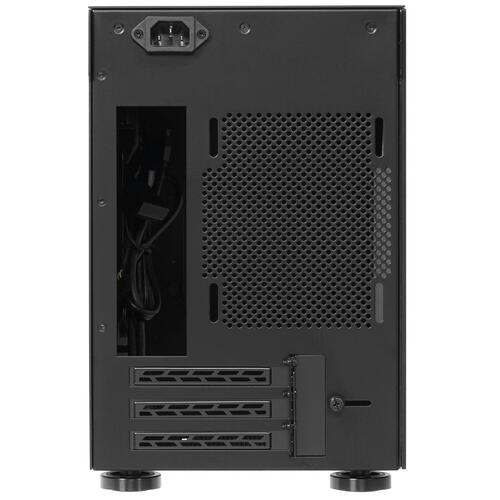 Модель рассчитана на установку материнской платы Mini-DTX или Mini-ITX, которая может быть размещена вертикально. Систему охлаждения можно выбрать самостоятельно. Это может быть водяная система или воздушная система охлаждения. Максимальная длина видеокарты, которая может быть размещена в корпусе, не должна превышать 320 мм. Внутри есть 3 слота расширения, а также отсеки для размещения накопителей: 2 по 2,5 дюйма и 1 на 3,5 дюйма. Максимальная высота используемого кулера для процессора не должна превышать 165 мм.