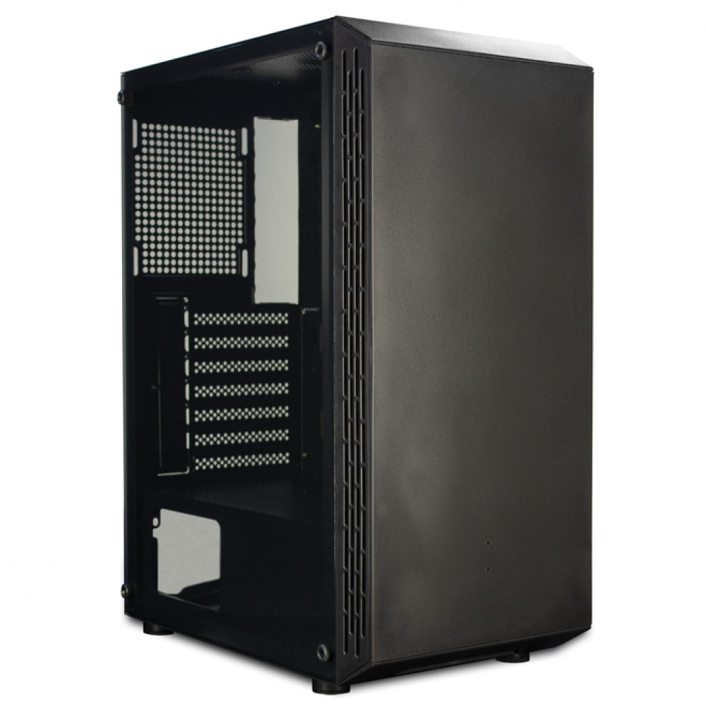 Корпус произведен из высококачественного металла толщиной 0,45 мм, передняя панель выполнена из пластика, левая стенка оснащена прозрачным окном из акрилового стекла. Через это стекло отлично видно все наполнение вашего компьютера, поэтому при сборке можно использовать компоненты со светодиодной подсветкой. В комплектацию к корпусу не входят блок питания и вентиляторы, чтобы вы смогли самостоятельно подобрать модели, наиболее удачные для вашей системы. Под вентиляторы в корпусе предусмотрены отсеки на фронтальной и тыловой частях.