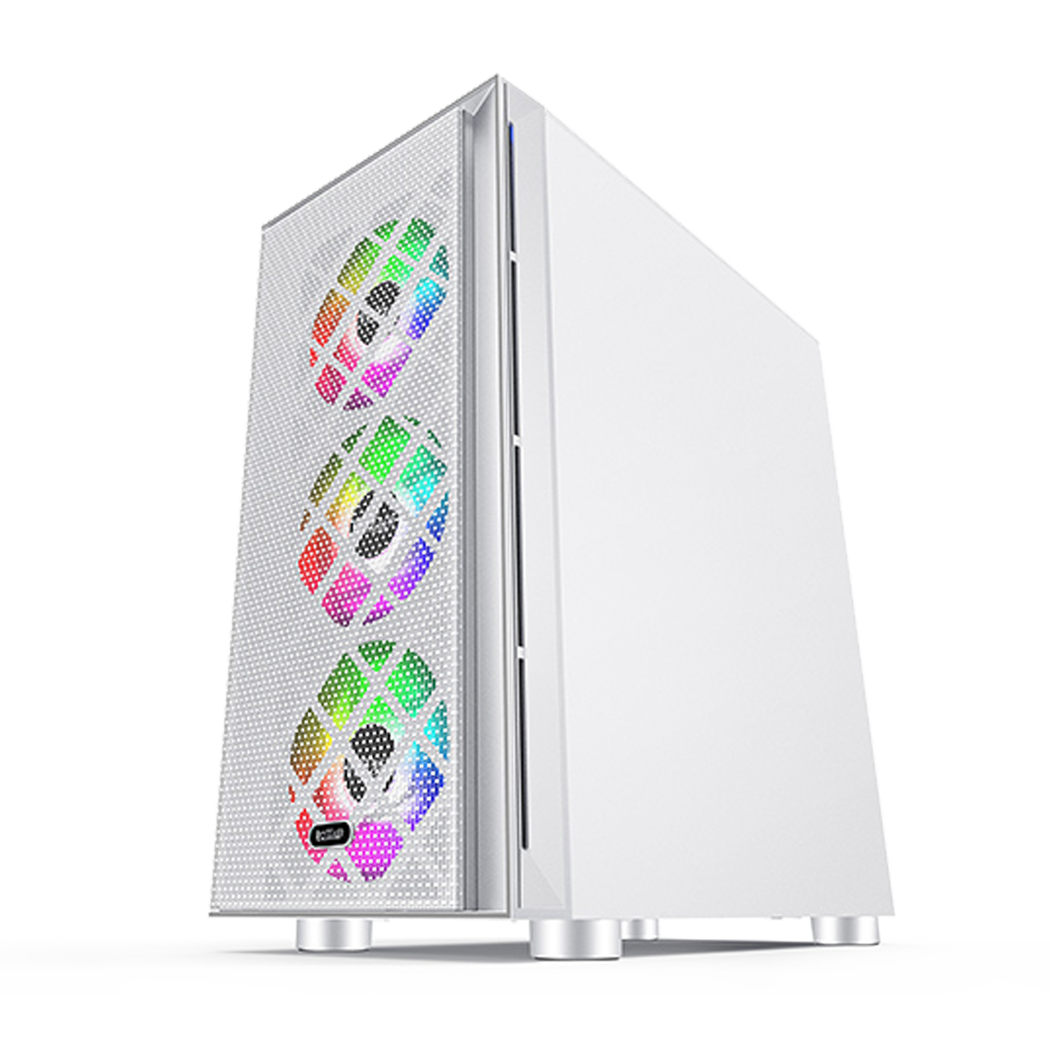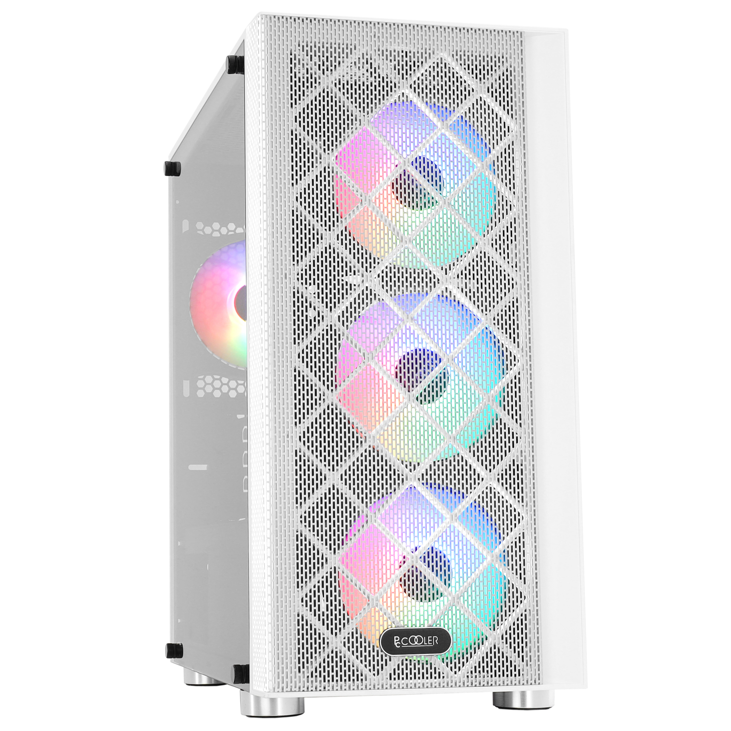 Корпус PCCooler Platinum MM200W Mesh 4F смотрится эффектно благодаря входящим в комплектацию вентиляторам с RGB-подсветкой. Модель белого цвета со стенками из высококачественной стали. На одной из стенок размещено большое прозрачное окно со стеклом из закаленной стали, за которым отлично видно все оснащение вашего компьютера. Модель выполнена в форм-факторе midiTower. В этом корпусе вы сможете установить материнскую плату Micro-ATX, Mini-ITX и видеокарту длиной до 330 мм.