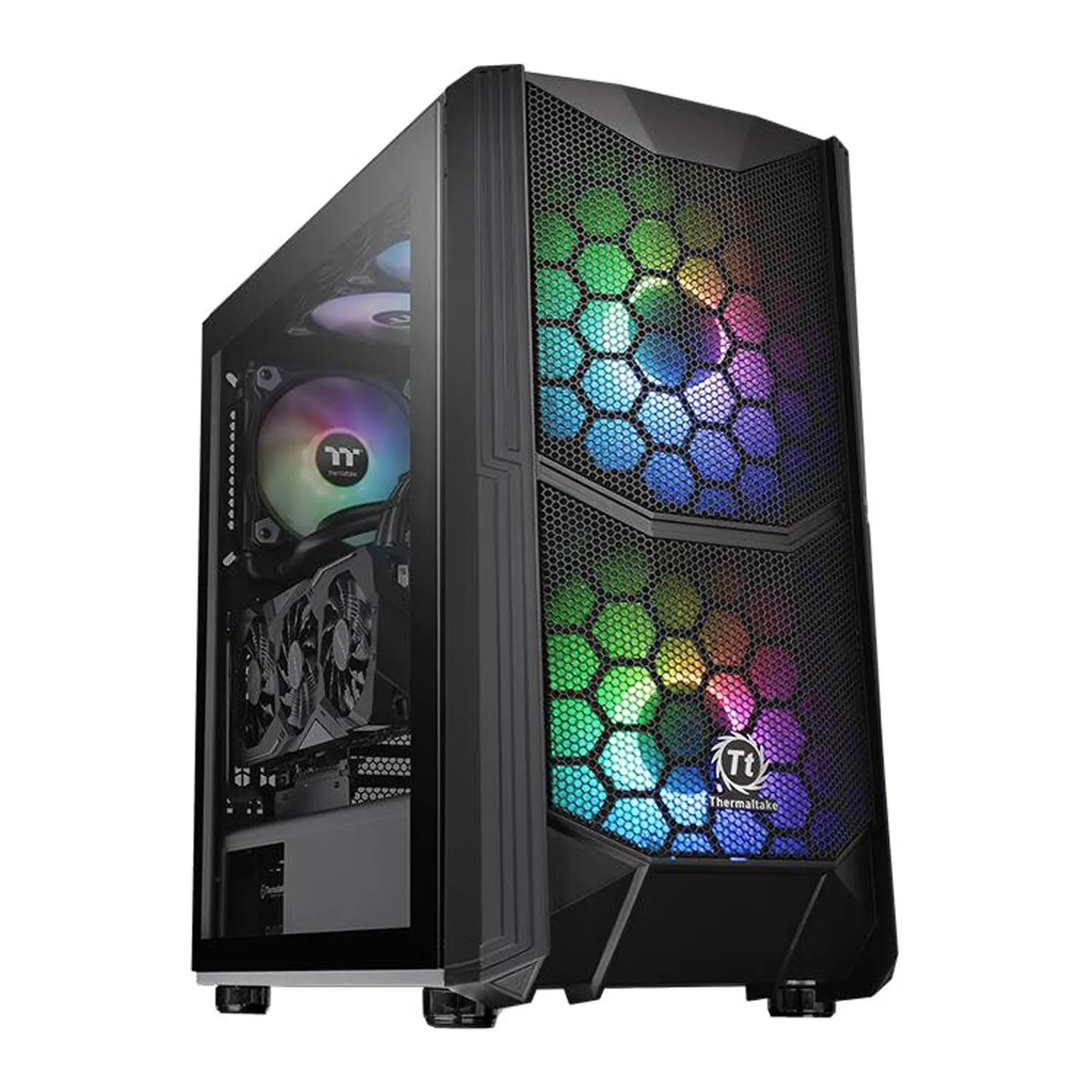 Thermaltake Commander C35 TG ARGB представляет собой корпус для компьютера, созданный в классическом черном оформлении и с разноцветной подсветкой. Тип форм-фактора данного корпуса представлен в виде Midi-Tower, благодаря чему можно оборудовать компьютер следующими форм-факторами плат – ATX, Micro-ATX и MiniITX. Предельная вместимость у микропроцессора достигает 18 см, а длина видеокарты до 41 см в положении горизонтально.