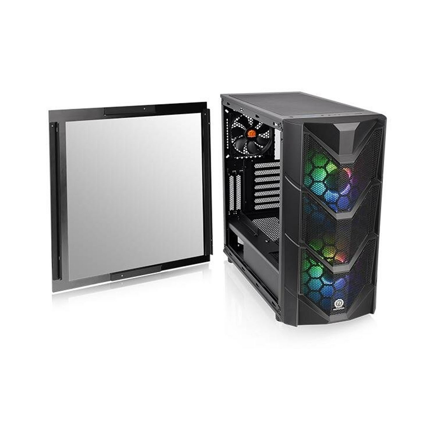 Корпус Thermaltake Commander C36 TG ARGB сделан из отличного стального материал со стеклянным боковым окошком. В корпусе присутствуют три внутренних отсека под 3,5" диска и два отсеками для диска 2.5 дюймов. На лицевой стороне находится два 3.0 USB интерфейсами и два аудио разъема. Корпус оснащен девятью слотами расширений под установку необходимых комплектующих.