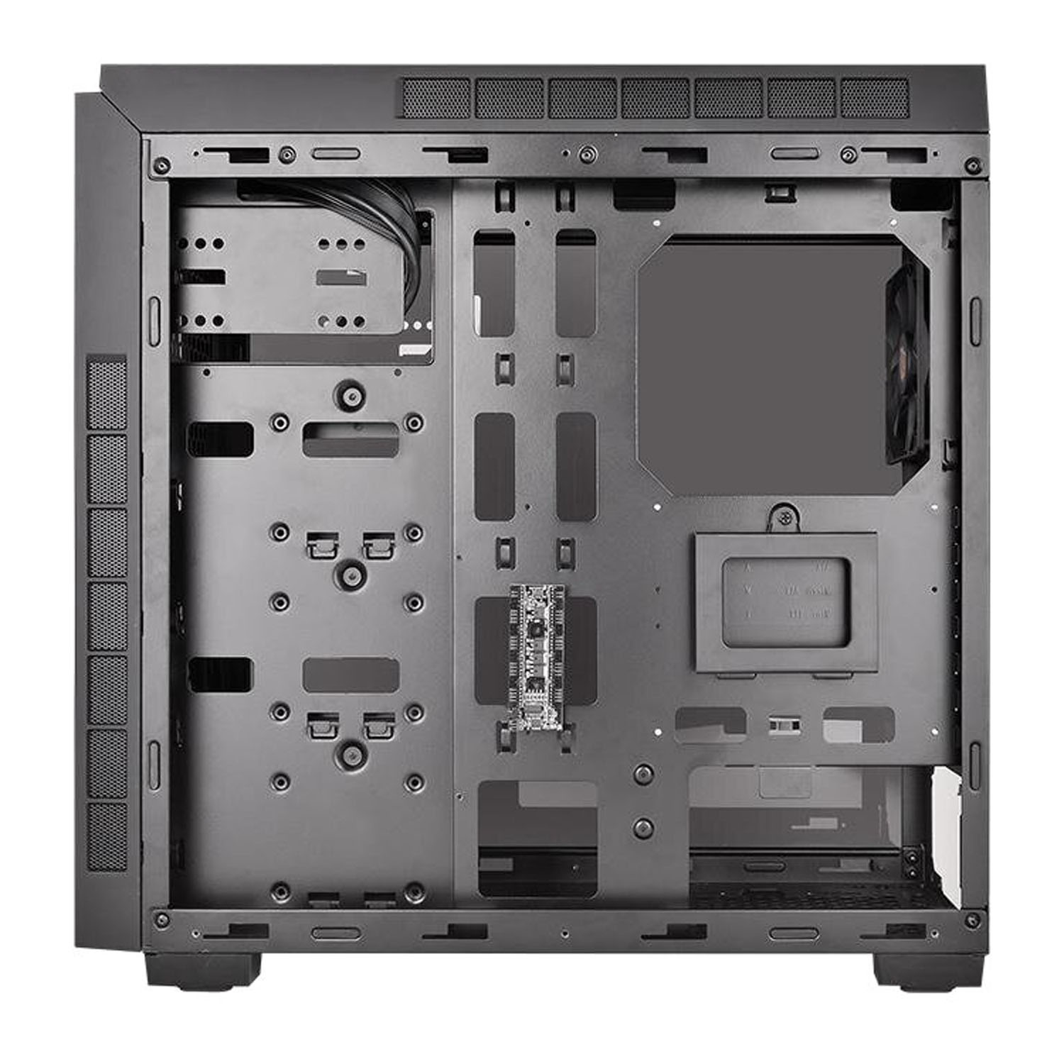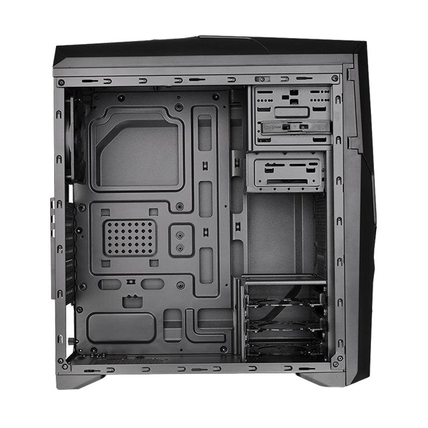 Модель Thermaltake Versa N25 уже имеет один встроенный кулер размером 120 мм, помимо это есть возможность поставить еще четыре и жидкое охлаждение. В корпусе легко устанавливается важные комплектующие за счет снимающихся боковых стенок. Для блока питания предусмотрено место снизу корпуса.
