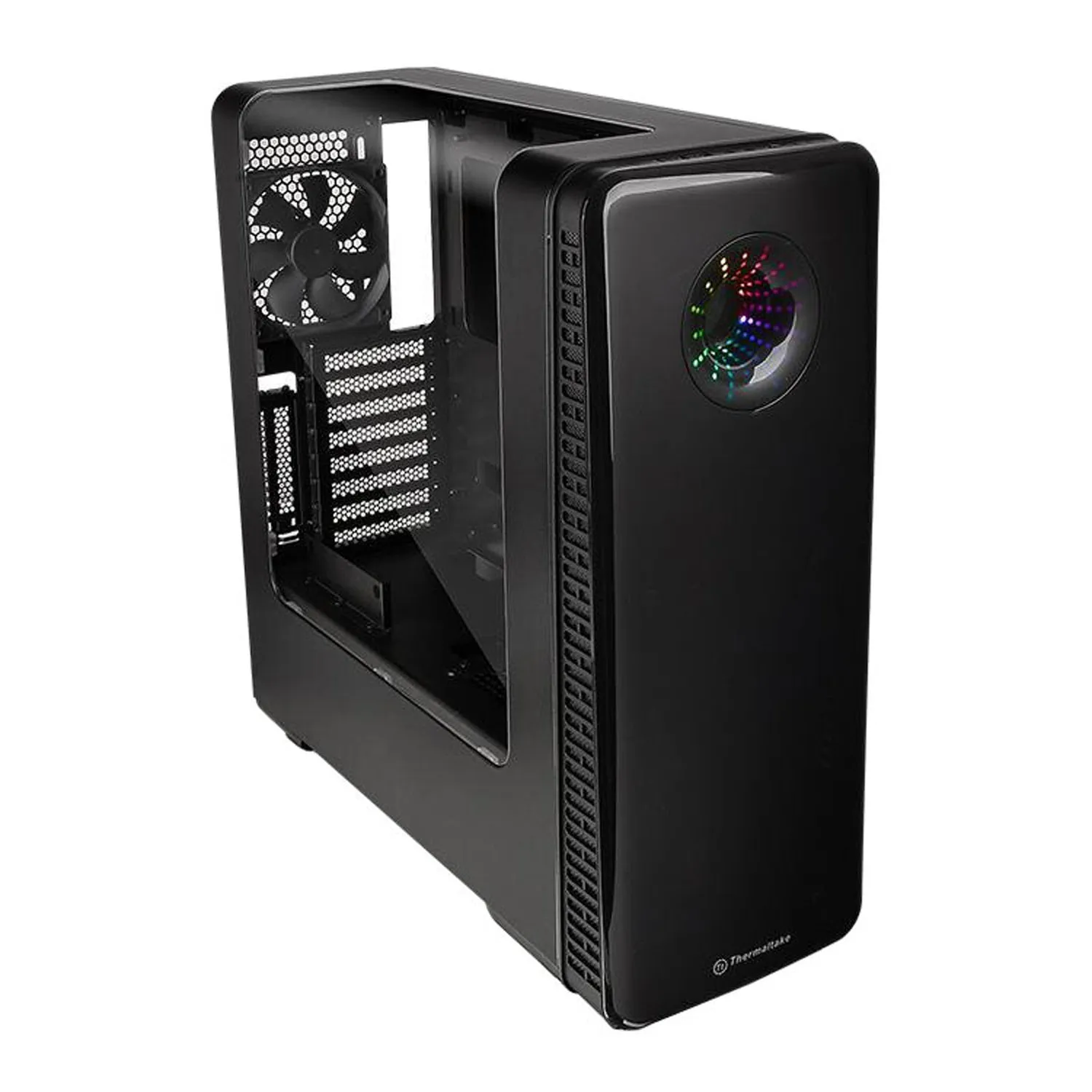 Корпус Thermaltake View 28 RGB сконструирован из качественного стального материала, со стеклянным боковым окошком. Корпус оснащен двумя внутренними отсеками под 3,5" диска и четырьмя отсеками для диска 2.5 дюймов. На лицевой стороне находится три 2.0 USB интерфейса и один 3.0 USB, а также два аудио выхода. Чтобы устанавливать нужные комплектующие корпус снабжен десятью слотами расширений.