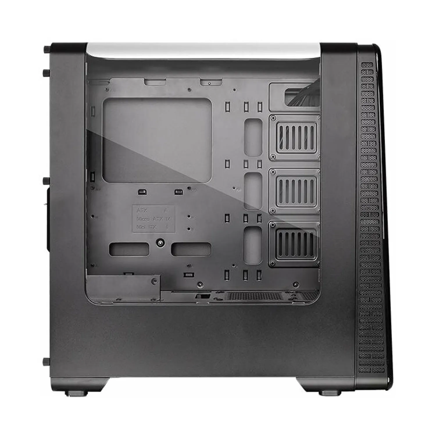 В модель Thermaltake View 28 RGB уже установлен один вентилятор размером 120 мм, дополнительно можно поставить еще два и жидкое охлаждение. В корпус комфортно устанавливается любое оборудование за счет съемных стенок. Для блока питания приготовлено место внизу корпуса.