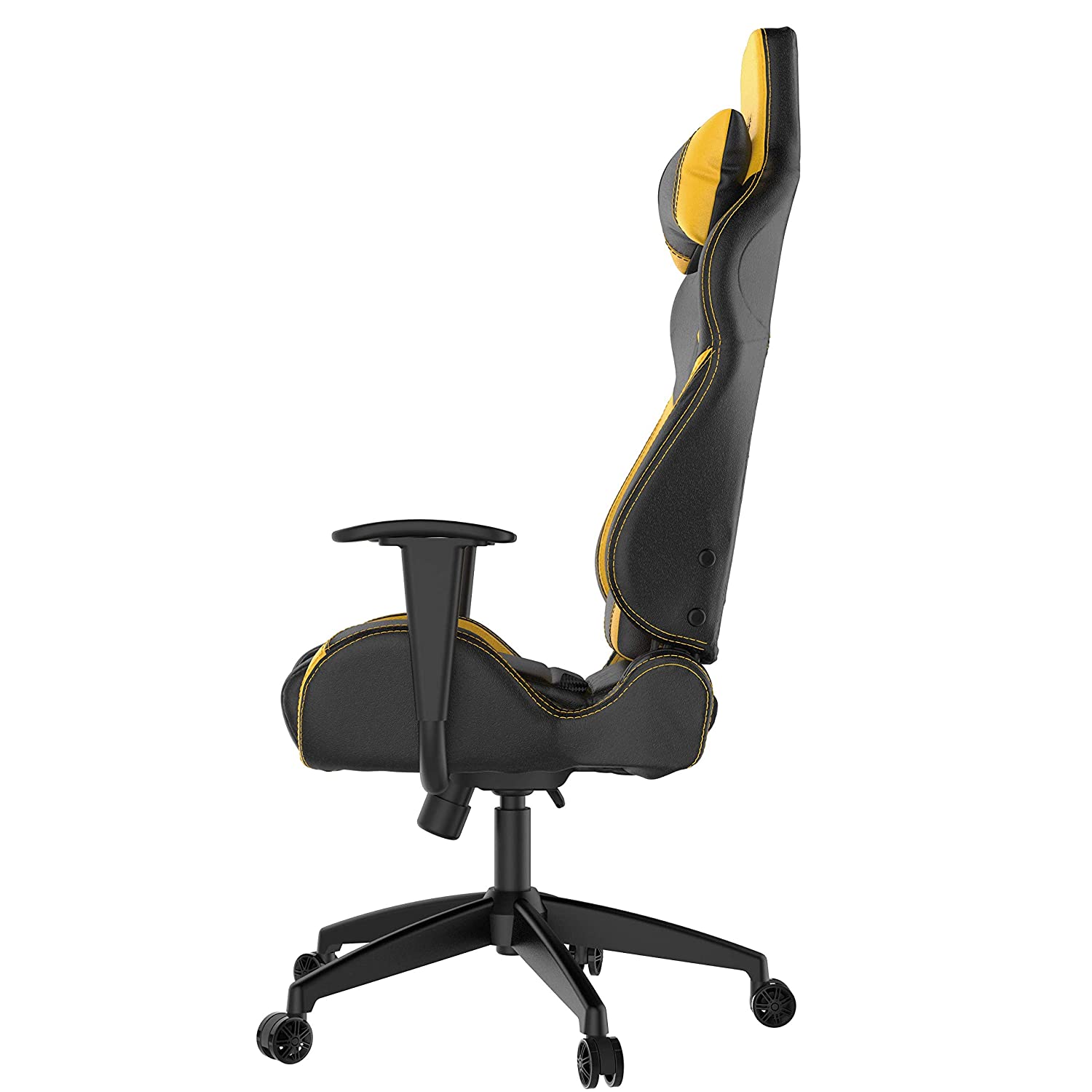 Кресло Gamdias ACHILLES E2 L BY Yellow содержит прочный каркас из толстостенной стали с предельной нагрузкой в 200 кг. Газлифт четвертого класса обеспечивает возможность настройки высоты сидения. Обито современной дышащей искусственной кожей, окрашенной в черный и желтый цвета. Для поддержки поясницы и шеи имеются две дополнительные подушки.