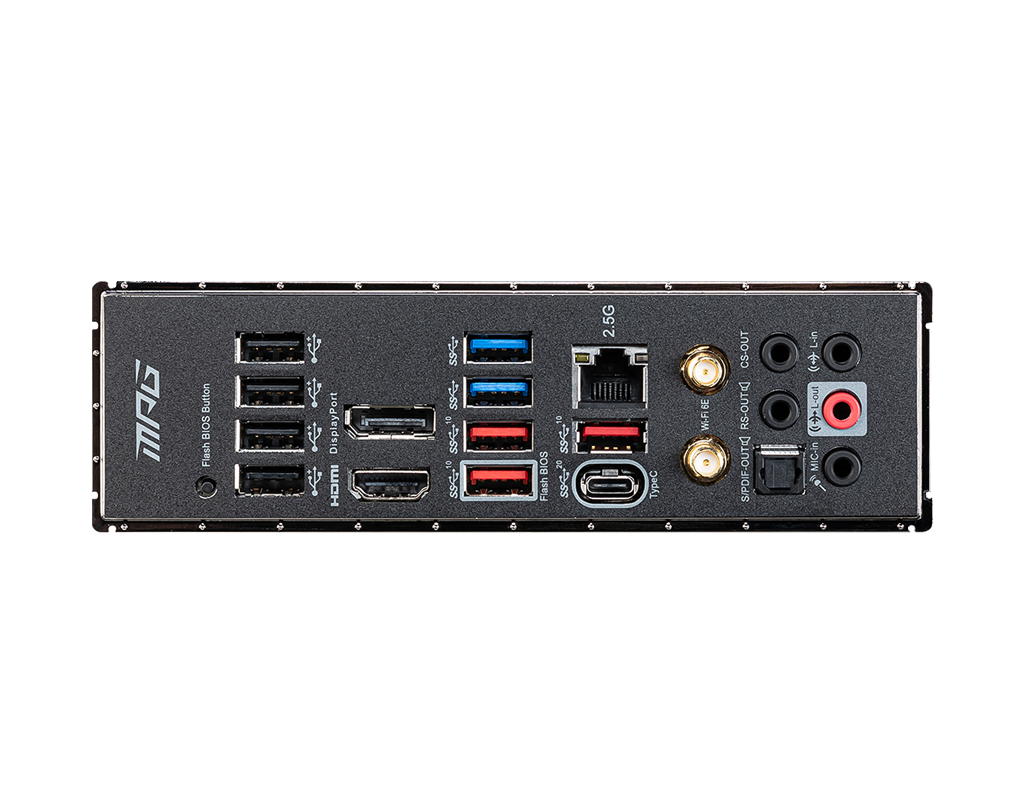 | Разъемы | 4 х USB 3.2 Gen 1 / 8 х USB 2.0 / 2 х USB-C / 3 x USB 3.2 Gen 2 / 5 x Аудиоразъем / 1 х DisplayPort / 2 х SMA / 1 х HDMI / 1 х RJ45 / 1 х Optical S/PDIF Out |