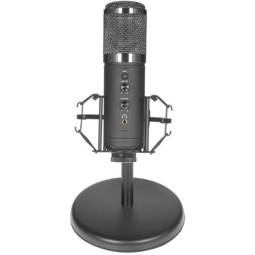 Микрофон Trust GXT 256 EXXO изготавливается с современным строгим дизайном. Выполнен в черном цвете. Корпус создан из металлического сплава. Комплектуется настольной стойкой и антивибрационным подвесом. Предусмотрен порт 3.5 мм для использования наушников. Подключается к системным платам посредством стандартного интерфейса USB. Длина комплектного кабеля составляет 180 см, а уровень чувствительности – 150 Ом.