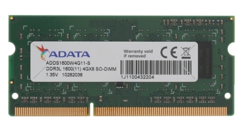 Модуль оперативной памяти Adata ADDS1600W4G11-S 4GB изготовлен в полнопрофильном формате. Устанавливается в стандартный интерфейс SO-DIMM DDR3L. Общая пропускная способность составляет 12800 Мбайт/с. Выставлены заводские тайминги 11-11-11 с латентностью CL11.