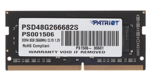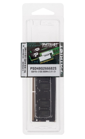 Модуль оперативной памяти Patriot PSD48G266682S 8GB изготовлен в полноразмерном формате. Поддерживает установку в стандартные слоты SO-DIMM DDR4. Работает с таймингами задержек 19-19-19-43, а также имеет общую скорость обмена данными в 21300 Мбайт/с. Использует пониженное напряжение электропитания 1.2 В.