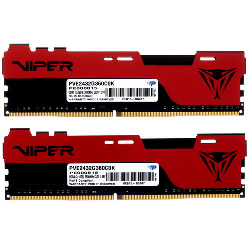 Два модуля оперативной памяти Patriot Viper Elite II по 16 ГБ каждый представляют собой высокоэффективные компоненты для сборки мощного игрового компьютера или продвинутой рабочей станции. Оперативная память с общим объемом в 32 ГБ и высоким показателем частоты 3600 МГц обеспечивает быстродействие системы при обработке и хранении временных данных. Планки выполнены в соответствии с типоразмером DIMM и совместимы с разными платформами. Устройства устанавливаются в свободные слоты материнской платы. Высота планок составляет всего 35 мм, что делает их высоко совместимыми с другими элементами сборки.