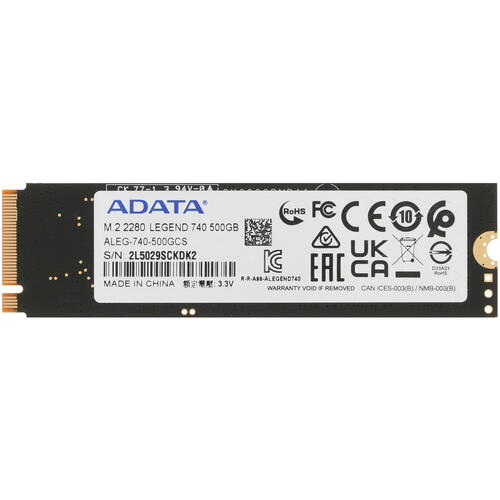 | Комплектация | Жесткий диск ADATA Legend 740 500GB / Документация |