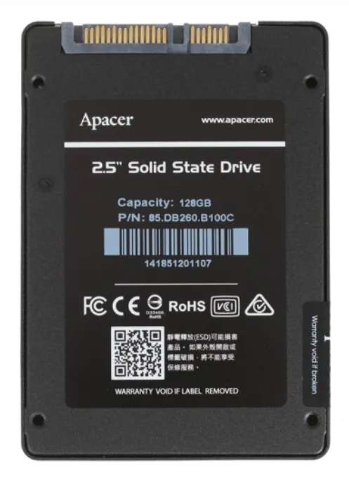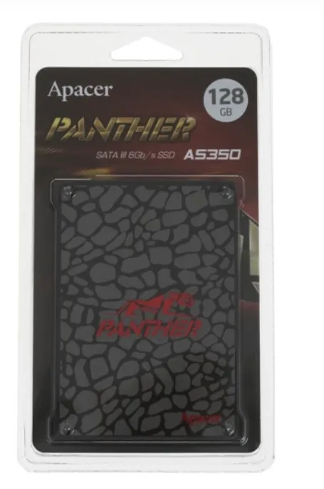 SSD диск Apacer AS350 Panther 128GB изготавливается в стильном дизайне. Имеется корпус из прочного пластика с окраской в серый цвет. Устойчив к воздействиям вибраций и нагрузке до 1500 G. Использует интерфейс SATA 3 с предельной скоростью обмена в 6 Гбит/с для подключения к системной плате. Выполнен в стандартном формате 2.5 дюйма.