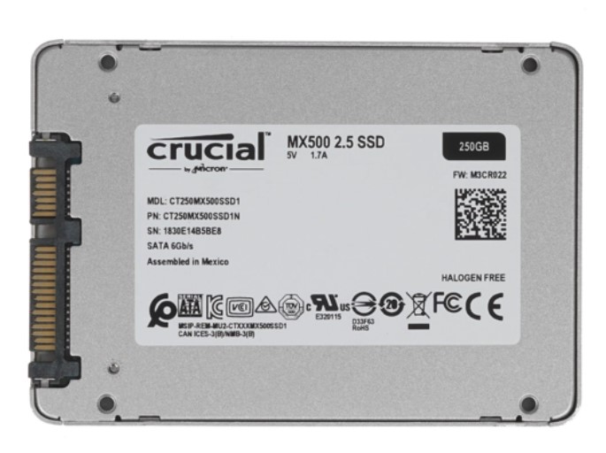 | Комплектация | Твердотельный накопитель Crucial MX500 250 Gb / Адаптер от 7 до 9.5 мм - 1шт. / Документация |