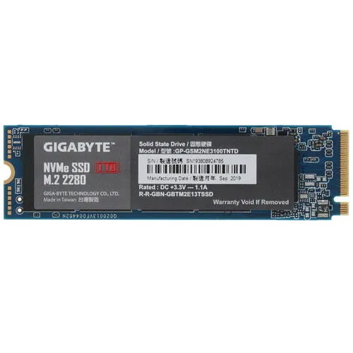 Накопитель SSD от бренда Gigabyte имеет большой объем в 1 ТБ для записи данных и подходит для установки в игровые компьютеры или высокопроизводительные рабочие офисные системы. Устройство поможет повысить скорость оперативной памяти и увеличит скорость загрузки видеоигр или графических приложений. Диск соответствует стандарту 2280,поэтому подходит для установки в большинство современных системных блоков. Подключение накопителя производится с помощью интерфейса PCI-E 3.0 x4 и ключа М.2 разъема.