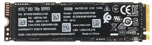 Твердотельный накопитель Intel 760p с большим объемом в 512 ГБ для хранения долговременных файлов разработан для установки в компьютеры и ноутбуки. Устройство выполняет функцию хранилища или системного диска и предоставляет большой объем для размещения фото и видео архивов, рабочих и личных файлов, а также программ. Модель подключается к материнской плате с помощью интерфейса PCI-E 3.0 x4 и демонстрирует высокую скорость обмена данными. Так, скорость записи данных достигает 1625 Мб/с, скорость чтения данных достигает значения в 3250 Мб/с. Это отличный вариант для установки в требовательную компьютерную систему, используемую для запуска профессиональных энергоемких приложений или продвинутых игр.