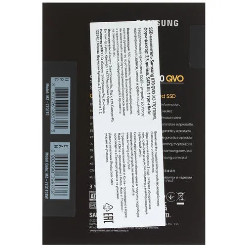 | Комплектация | SSD накопитель Samsung 870 Qvo 1000 GB / Документация |