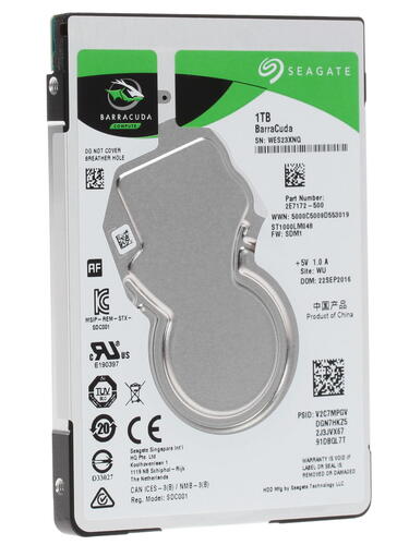 HDD Жесткий диск Seagate Barracuda работает практически бесшумно, так как скорость вращения шпинделя составляет всего 5400 rpm. В рабочем состоянии, ударостойкость модели составляет 400 G, а при хранении - 1000 G, что обеспечивает максимально высокий срок эксплуатации.