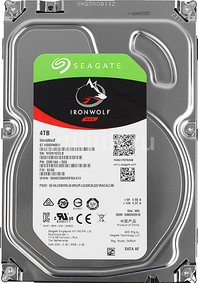 | Комплектация | Жесткий диск Seagate IronWolf ST4000VN008 4TB / Документация |