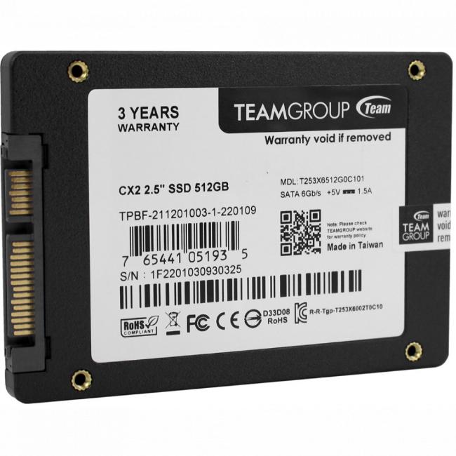Твердотельный накопитель Team Group CX2 разработан для внутренней установки в компьютеры и предназначен для записи и хранения цифровых данных объемом до 512 ГБ. Устройство выполнено в малом форм-факторе на 2,5 дюйма, занимает немного места и подключается к материнской плате с помощью интерфейса SATA 3 с высокой скоростью передачи данных в 6 ГБ/сек.