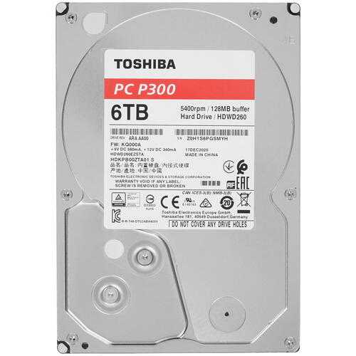 Жесткий диск Toshiba P300 с большим объемом для хранения и записи данных в 6 ТБ предназначен для установки в стационарные компьютеры и выполняет функцию цифрового хранилища. Это устройство поможет вам организовать емкое хранилище для личных файлов и рабочих документов, файлов мультимедиа и программ. Накопитель соответствует форм-фактору большого размера на 3.5 дюйма и подключается к материнской плате с помощью интерфейса SATA3, для которого характерна высокая скорость обмена данными до 6 ГБ/сек.