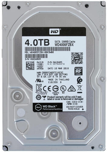 Жесткий диск Western Digital Black, WD4005FZBX - это пример высококачественного и надежного устройства, предназначенного для хранения больших объемов информации и используемого при сборке, как простых систем, так и мощных технологических серверов. Корпус выполнен из прочных и износоустойчивых материалов, обеспечивающих высокий срок службы устройства. Форм-фактор в 3.5 дюйма и вес в 720 г делают возможной установку в разных устройствах. Модель представлена с памятью объемом в 4000 Гб, что позволяет хранить самые необходимые данные. Высокая скорость передачи данных обусловлена наличием 256 Мб буферной памяти, а подключение к серверам осуществляется через технологический разъем SATA с пропускной способностью в 6 Гбит/с. Максимальная скорость интерфейса может достигать 202 Мб/с.