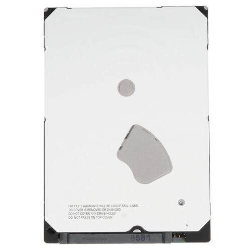 Подключение HDD диска производится через высокоскоростной интерфейс SATA 3, который обладает отличной пропускной способностью в 6ГБ/с. Жесткий диск выполнен в металлическом корпусе, соответствует форм-фактору 2,5 дюйма и имеет толщину всего 7 мм. Скорость вращения шпинделя средняя, до 5400 оборотов в минуту. Благодаря этому показателю время доступа к файлам составляет всего 3,5 мс. Объем буферной памяти на уровне в 128 Мбайт/с.