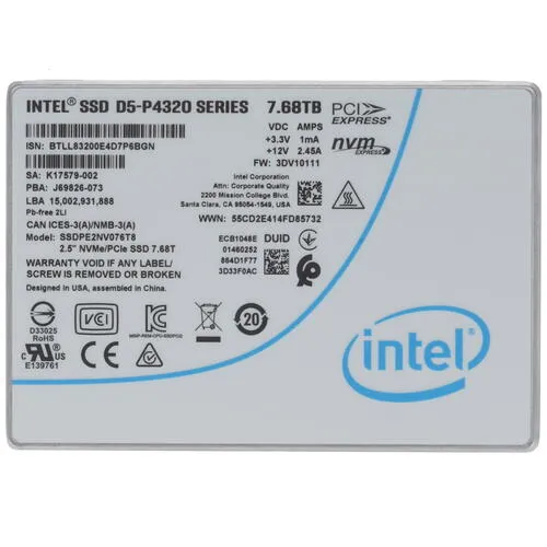 Твердотельный накопитель Intel D5 P4320 с емкостью в 7.68ТБ разработан для установки в корпоративные системы SSD и серверы. Устройство отличается высокой производительностью и эффективностью, повышает скорость работы приложений и всей системы и способствует более быстрому отклику в программах.