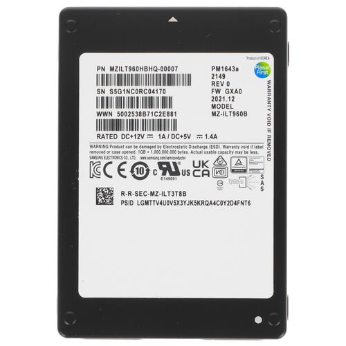 | Комплектация | Твердотельный накопитель Samsung PM1643a 960 Gb / Документация |