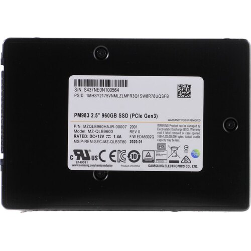 Твердотельный накопитель Samsung PM983 с емкостью для записи данных в 960 ГБ подходит для установки в корпоративные системы и обеспечивает их эффективную и быструю работу. Устройство соответствует стандартному типоразмеру на 2,5 дюйма с толщиной корпуса всего 7 мм и подключается к системе с помощью разъема U.2 и интерфейса PCIe Gen3 x4. Эта модель совместима с серверами, оснащенными корзинами под установку накопителей на 2,5 дюйма с поддержкой NVMe. Накопитель подходит для разных платформ и сборок.