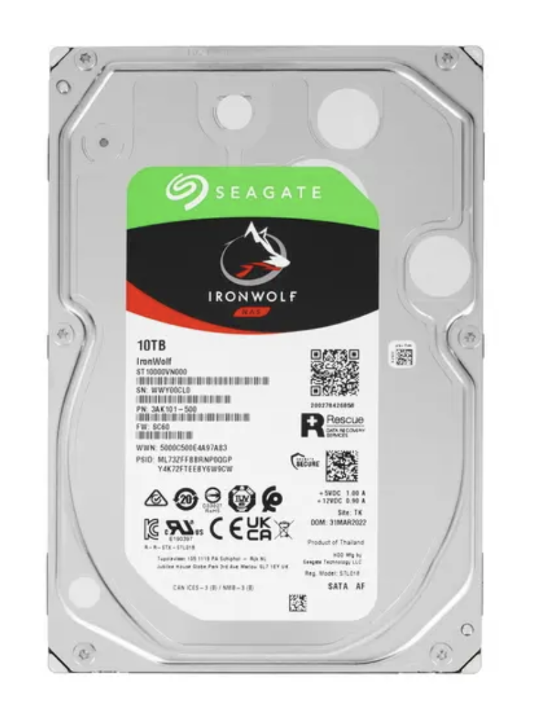 Жесткий диск Seagate IronWolf с большим объемом для записи и хранения данных в 10 ТБ разработан для установки в многодисковые системы хранения данных. Эта модель подходит для хранилищ NAS и оптимизирована под установку в RAID-массивы. Диск отличается высокой отказоустойчивостью и надежно работает при эксплуатации в режиме 24/7.