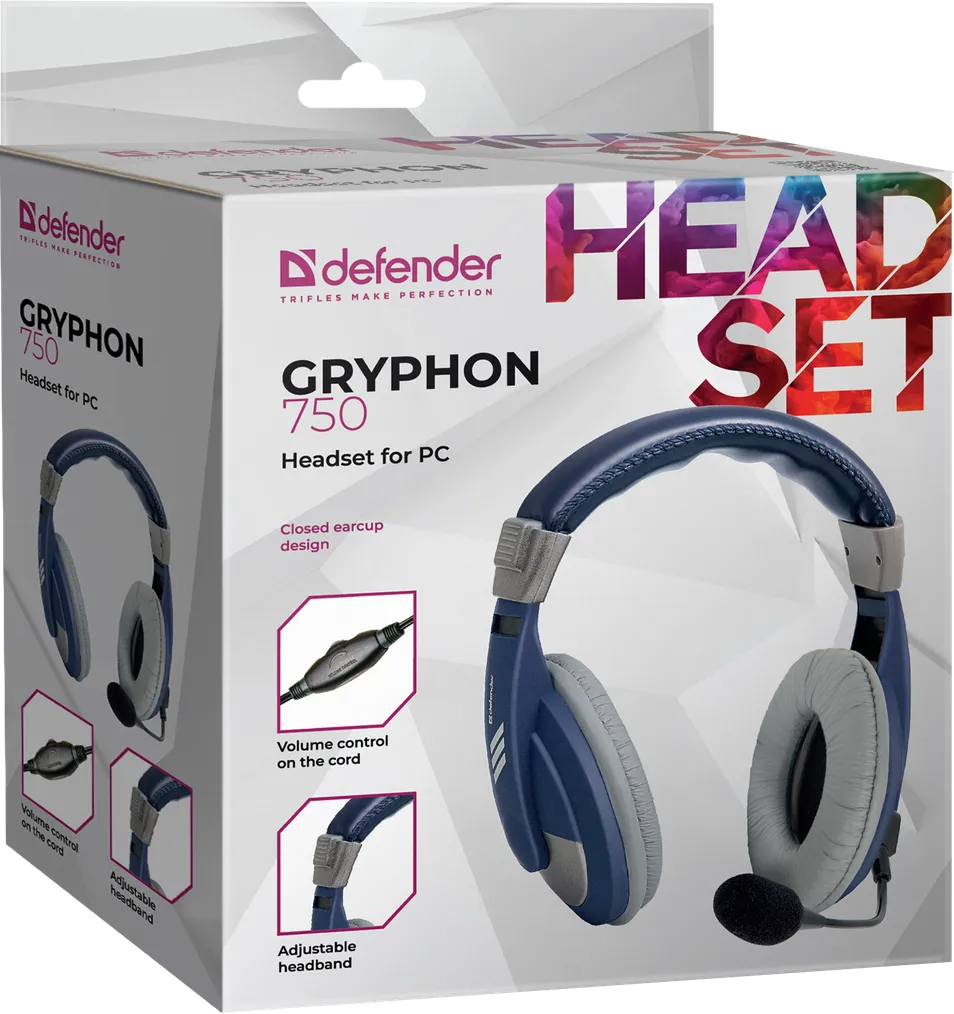 | Комплектация | Наушники накладные Defender Gryphon HN-750 Blue / Документация |