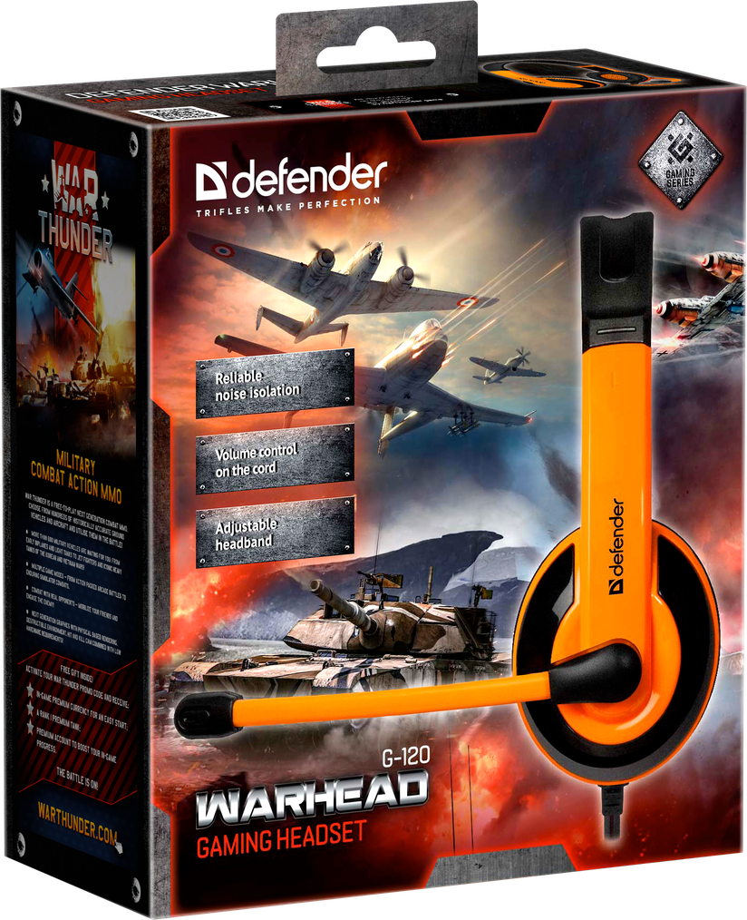 | Комплектация | Гарнитура Defender Warhead G-120 черно-оранжевый / Документация |